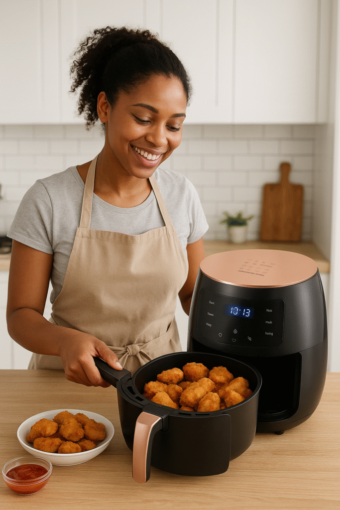 Perfect for families, gatherings, or meal prepping. Cook large portions of chicken, fries, fish, vegetables, pastries, and more — all in one go.